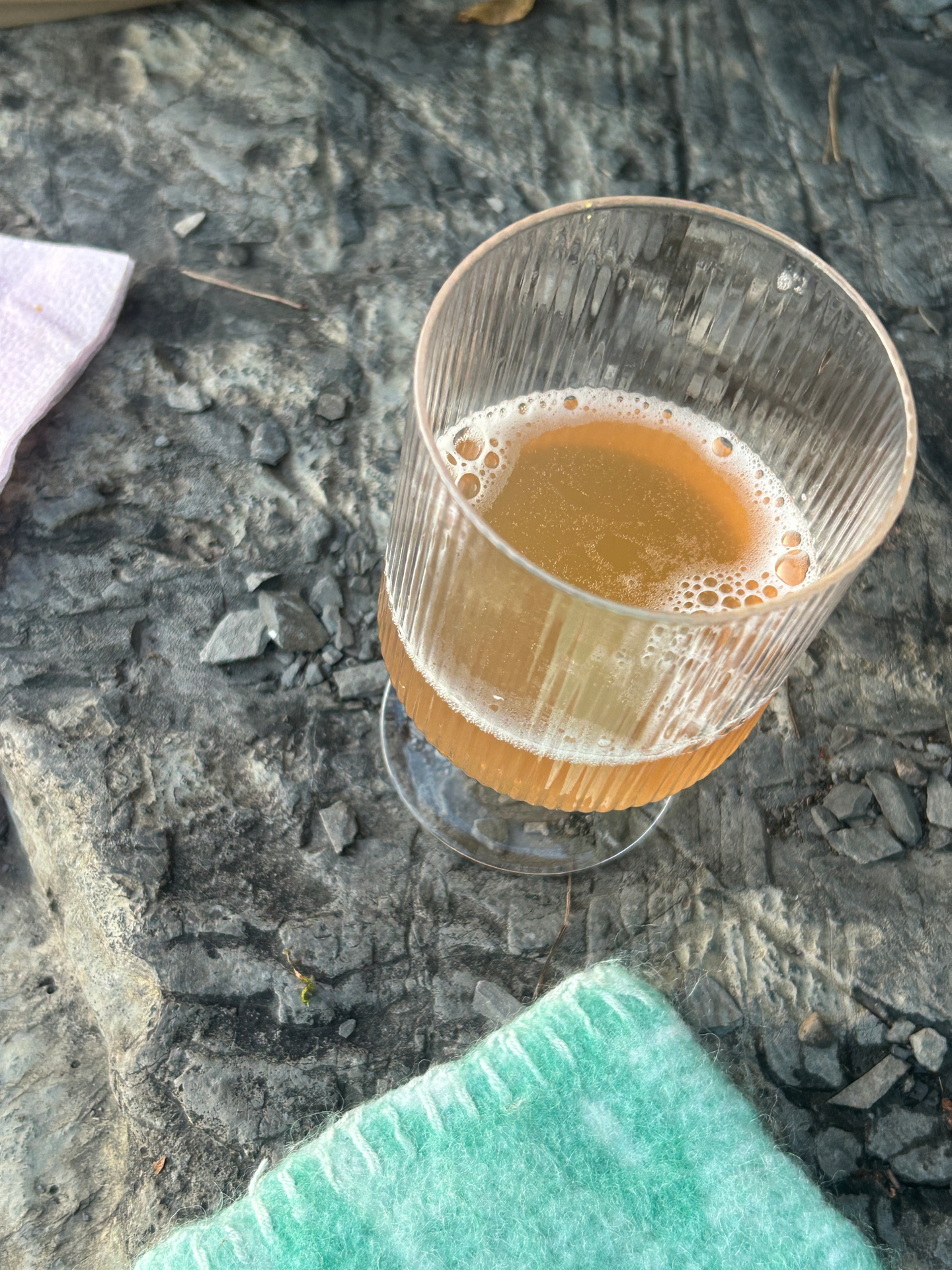 En pairing-opplevelse med Villbrygg og Mon Oncle i Oslo. Alkoholfrie drikker servert til dessert på et vakkert dekket bord på Michelin-restaurant.